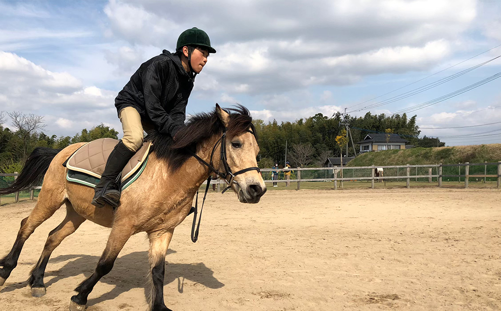 馬との触れ合い、馬のお世話、実際に乗馬をしたりしながら体幹機能を整え、