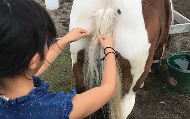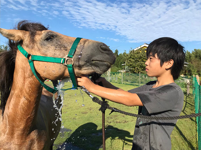自分の好きな馬と、思いやりの関係を築いていくことで、学校や家庭以外での、愛着のある「居場所」ができます。馬の世話を通して、与えること、育てること、つながることを学び、葛藤や自虐的な考え、否定的な感情、くり返し沸き起こる不安を脇に置いて、安全で思いやりのある関わり合いに注意を向けることができるようになるのです。