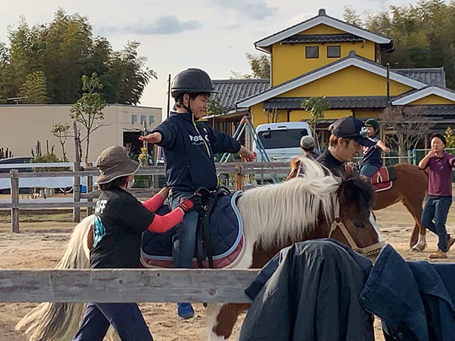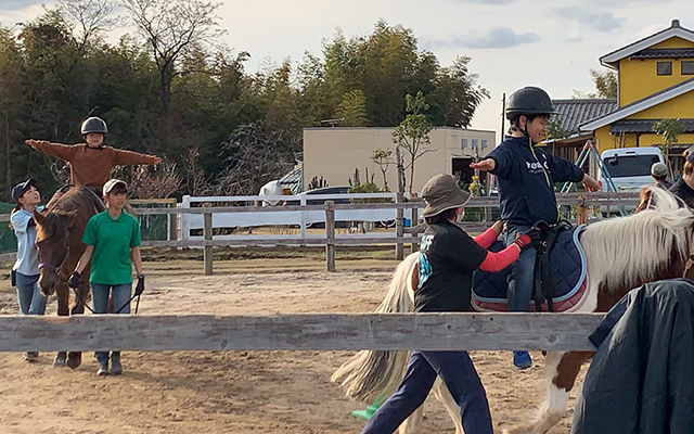 馬が歩くときのリズムの良い振動が脳を刺激し、身体をマッサージするという効果が身体の不自由な子や、じっとしていられない子にも有効なのです。